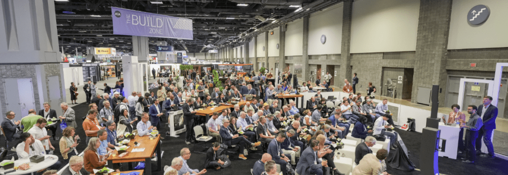 The expo floor was laid out like a wheel with spokes. At the center of the hub, the AIA booth acted as the expo floor’s North Star. The focal point – a vibrant, overhead 3-meter LED sphere – was a visual stunner and invited attendees to explore new territories.