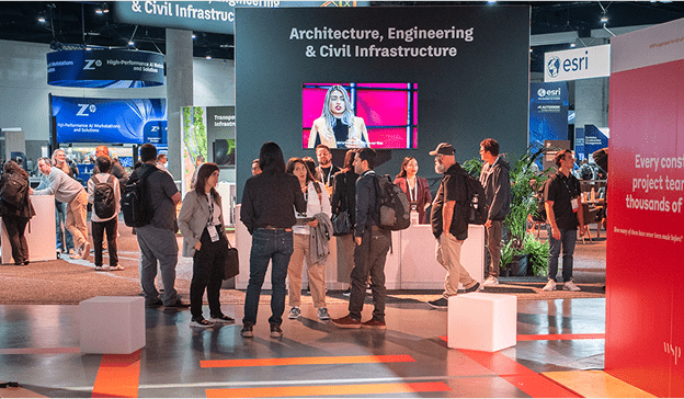 The Sponsor Pavilion featured industry partners and offered larger installations with interactive elements and lighting as a way to better connect with Autodesk’s high-tech audience.