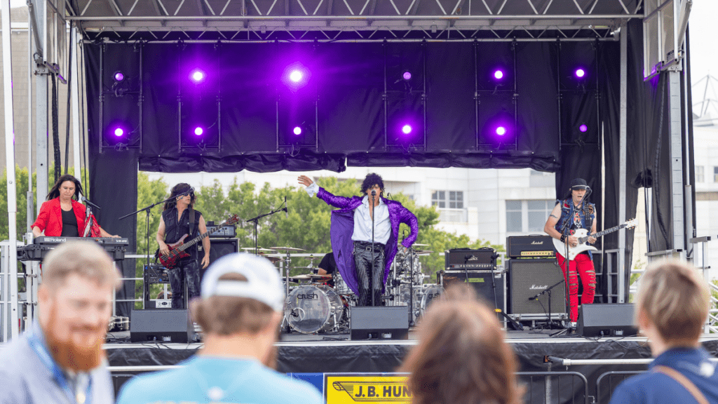 Attendees were treated to an outdoor concert at the Rock & Roll Hall of Fame featuring lookalike hall of famers such as Prince, Poison, and Michael Jackson! Despite challenges such as a nearby airport with FAA regulations on lighting and unpredictable weather, our AV team ensured that the music played without delay.