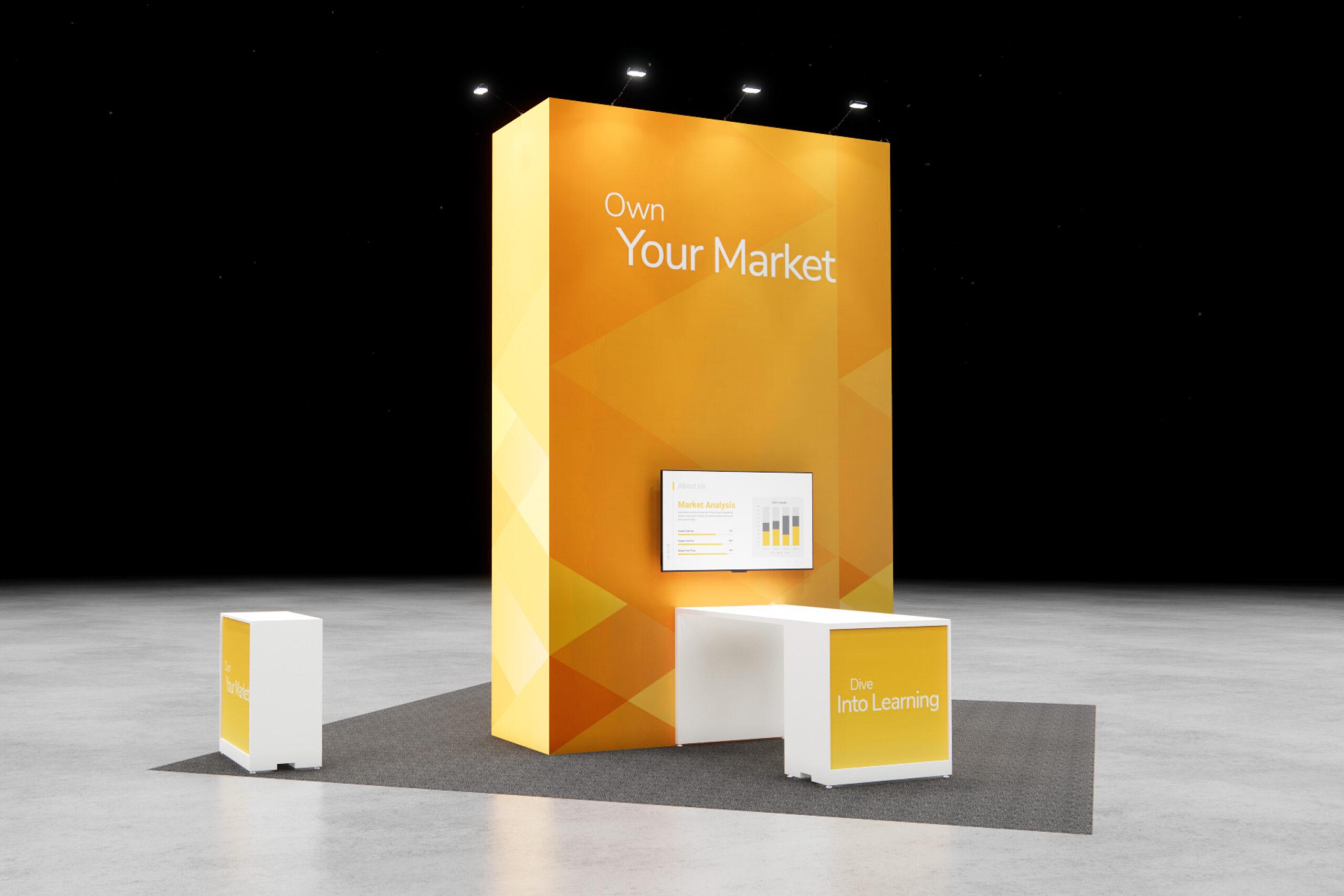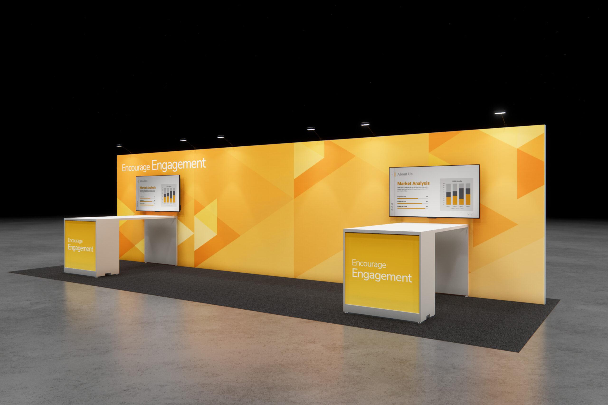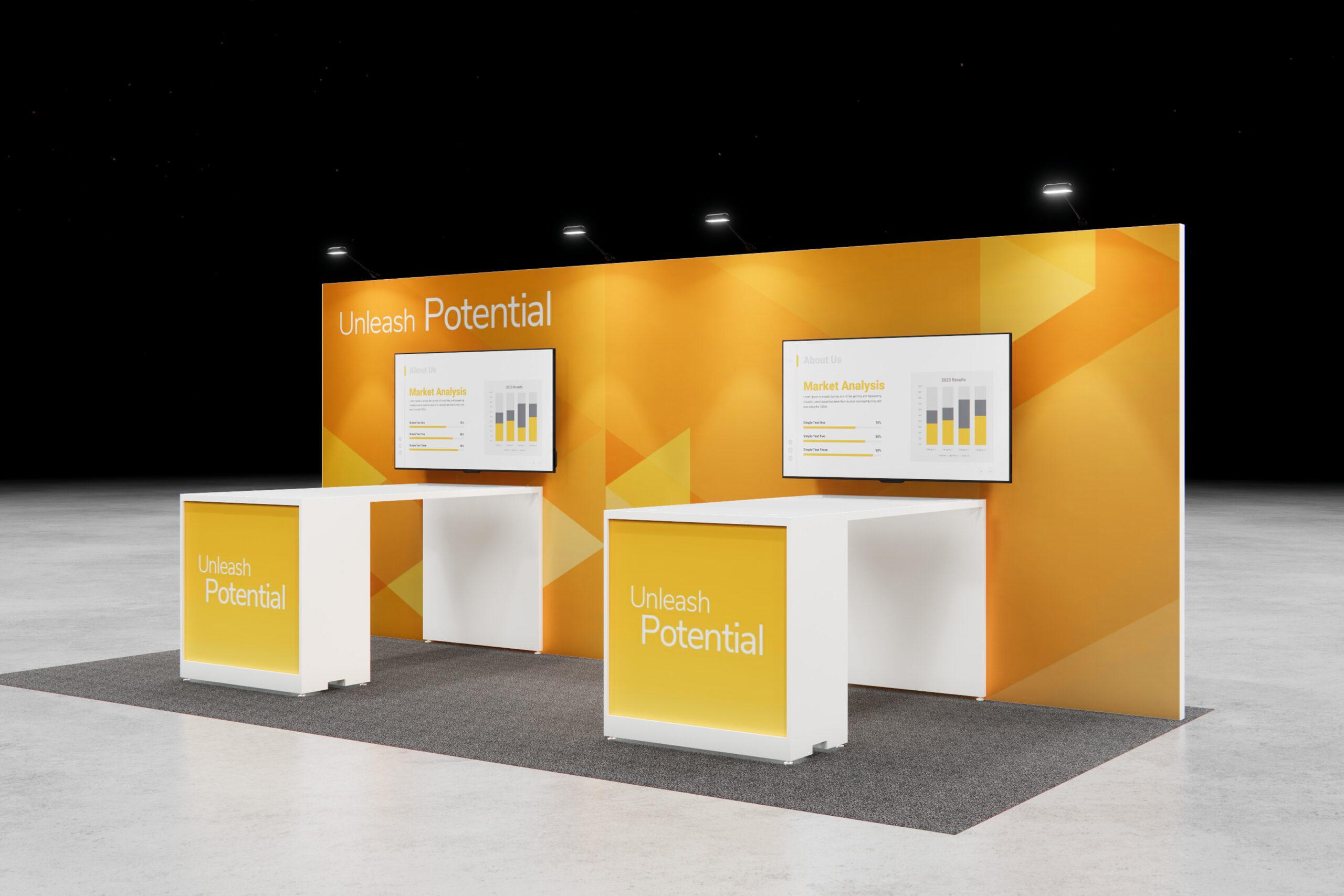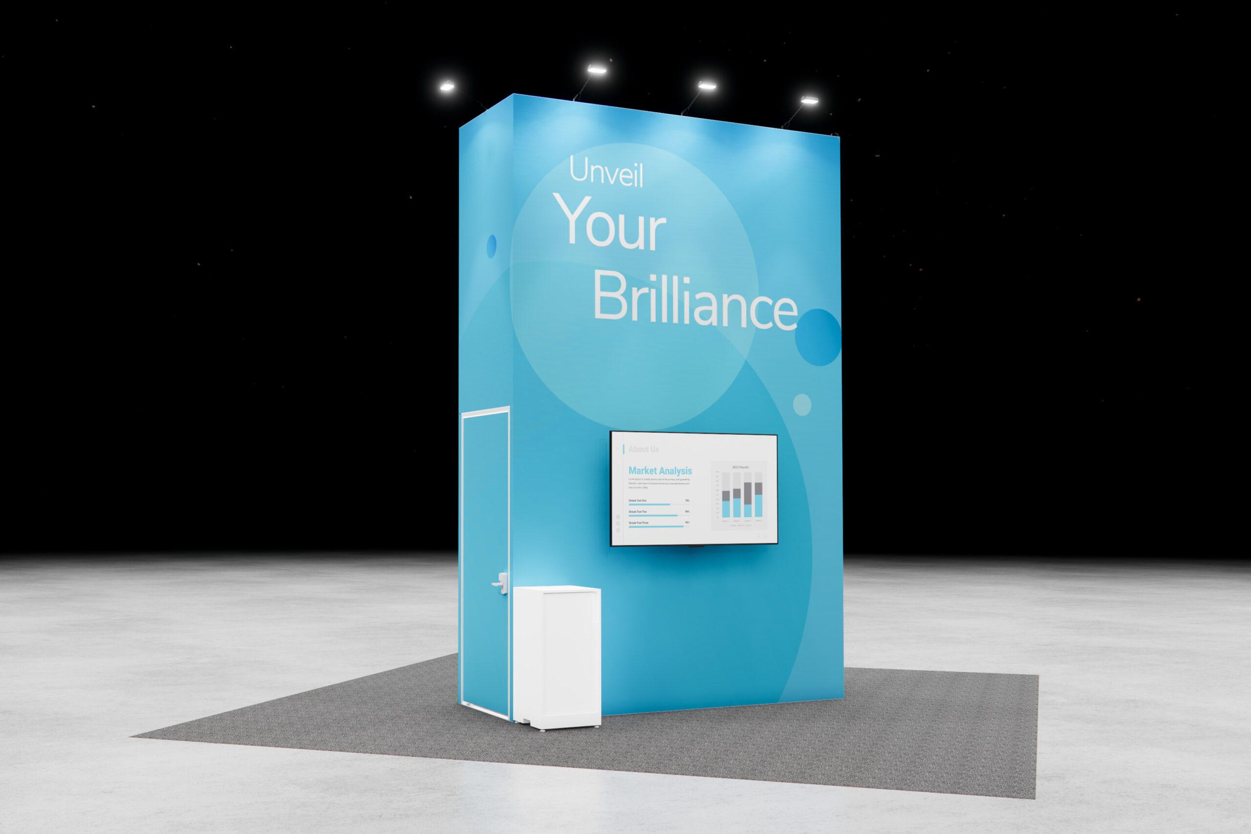 • Deliver your message with clarity and flair. This booth features a digital display and audience-focused layout to help your brand stand out.
