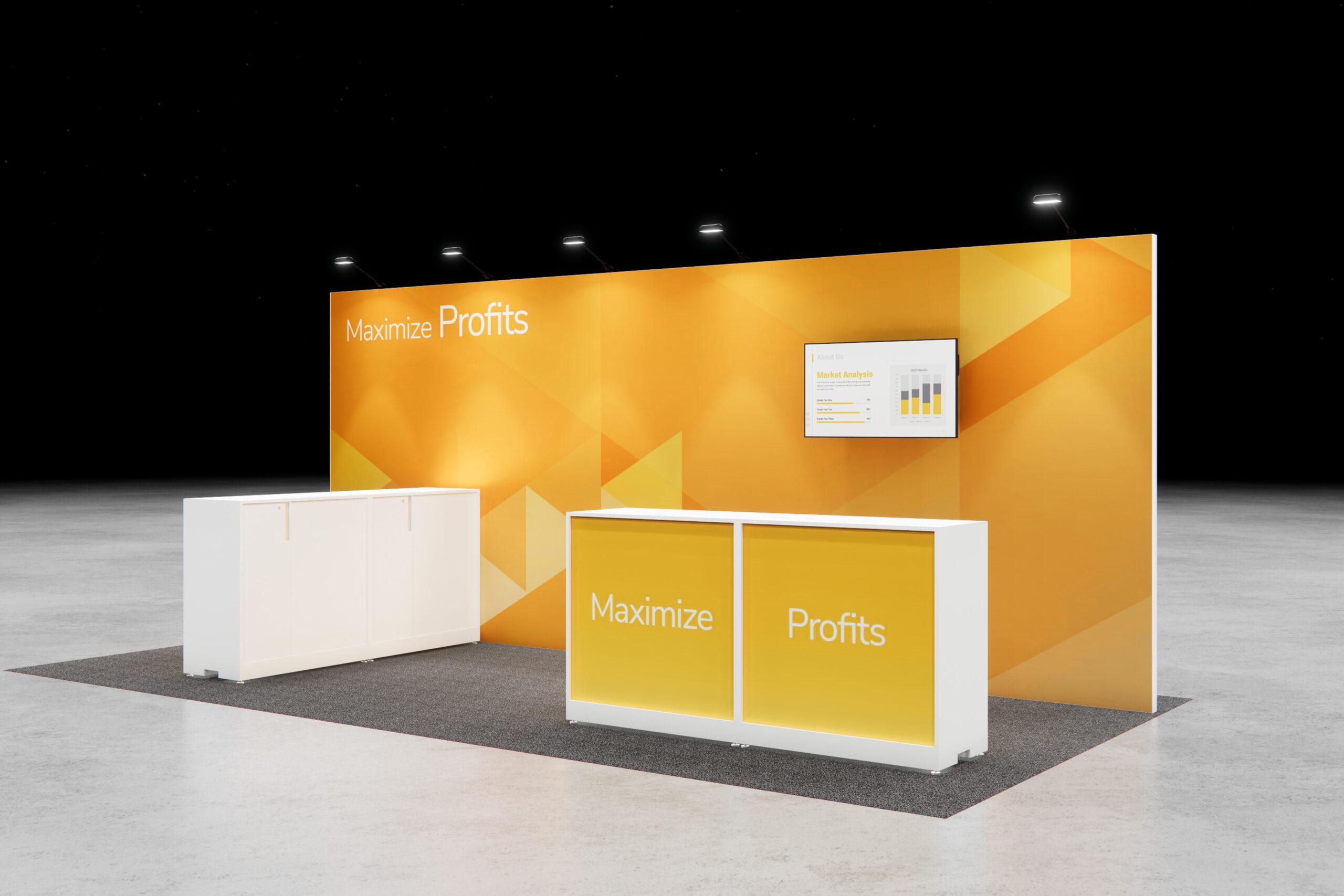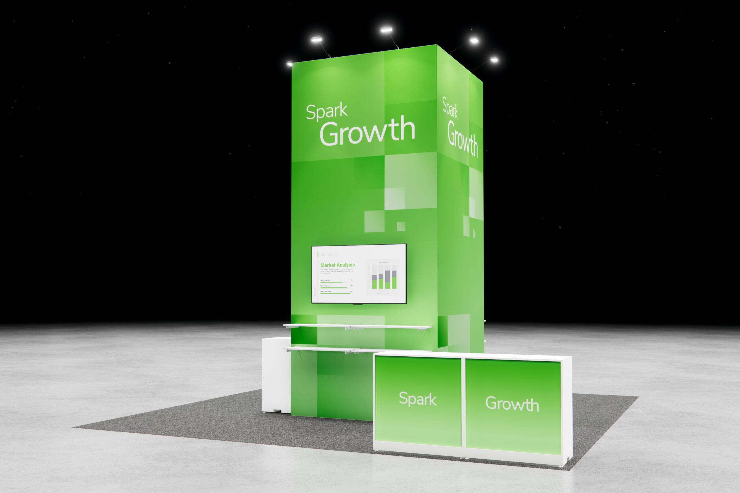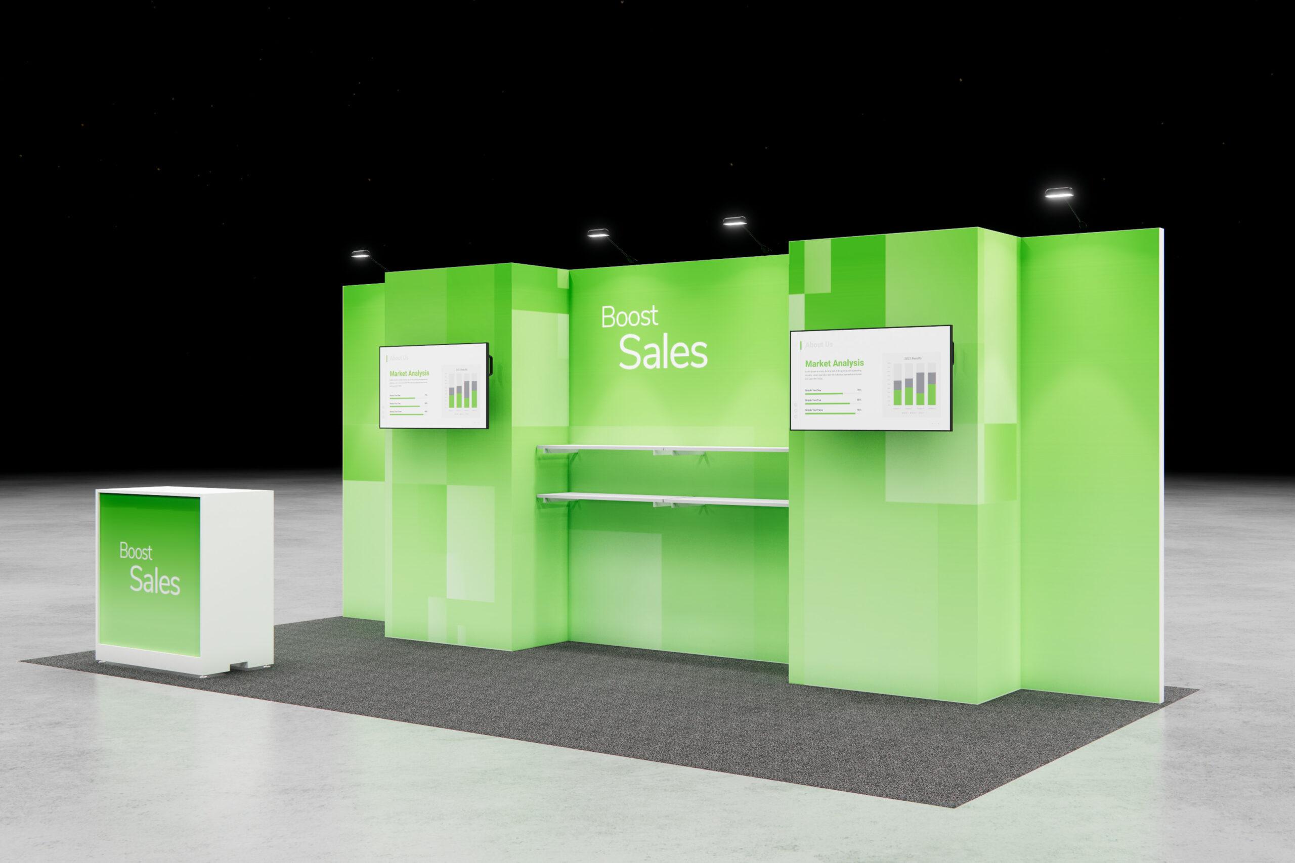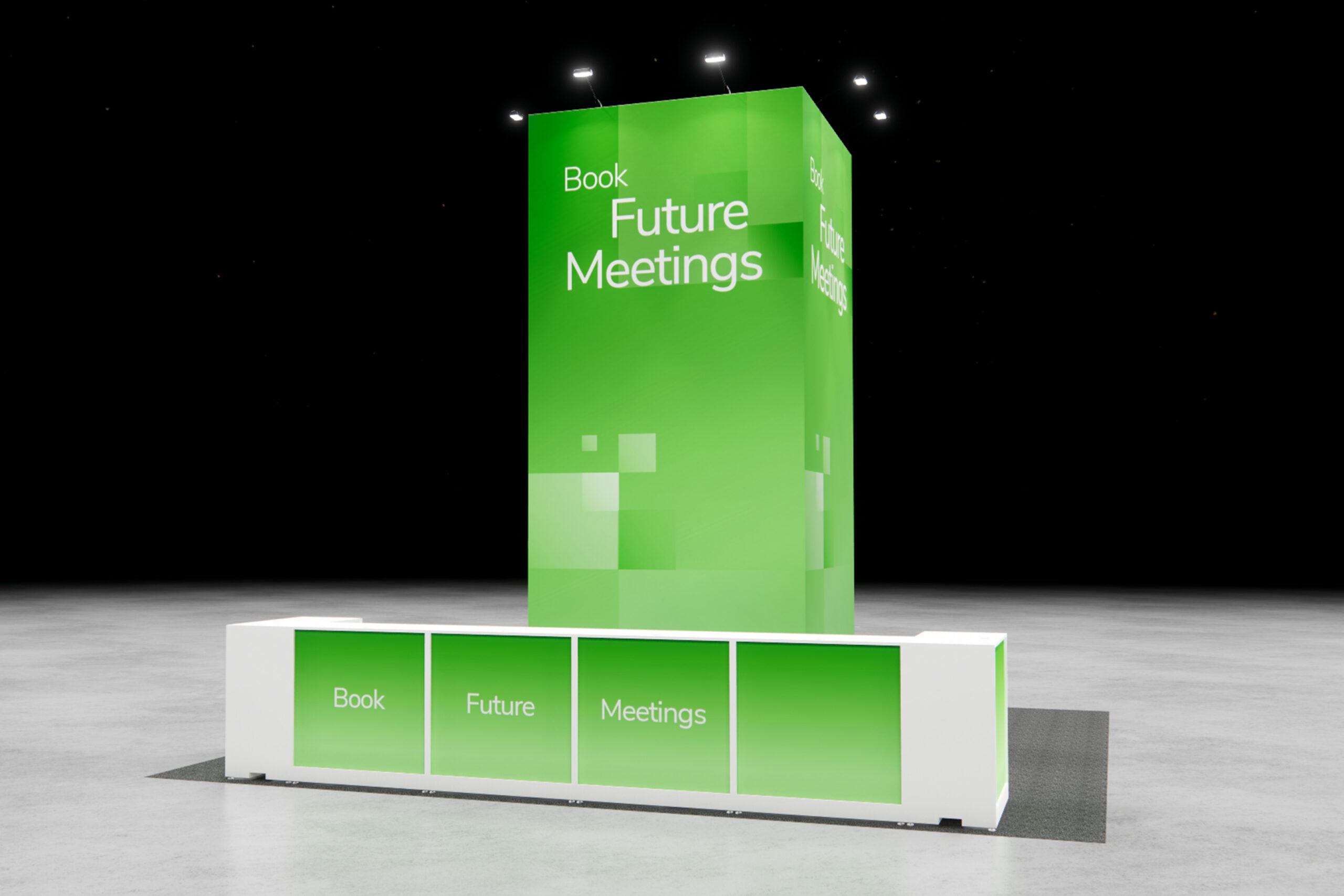 • Deliver your message with clarity and flair. This booth features a digital display and audience-focused layout to help your brand stand out.