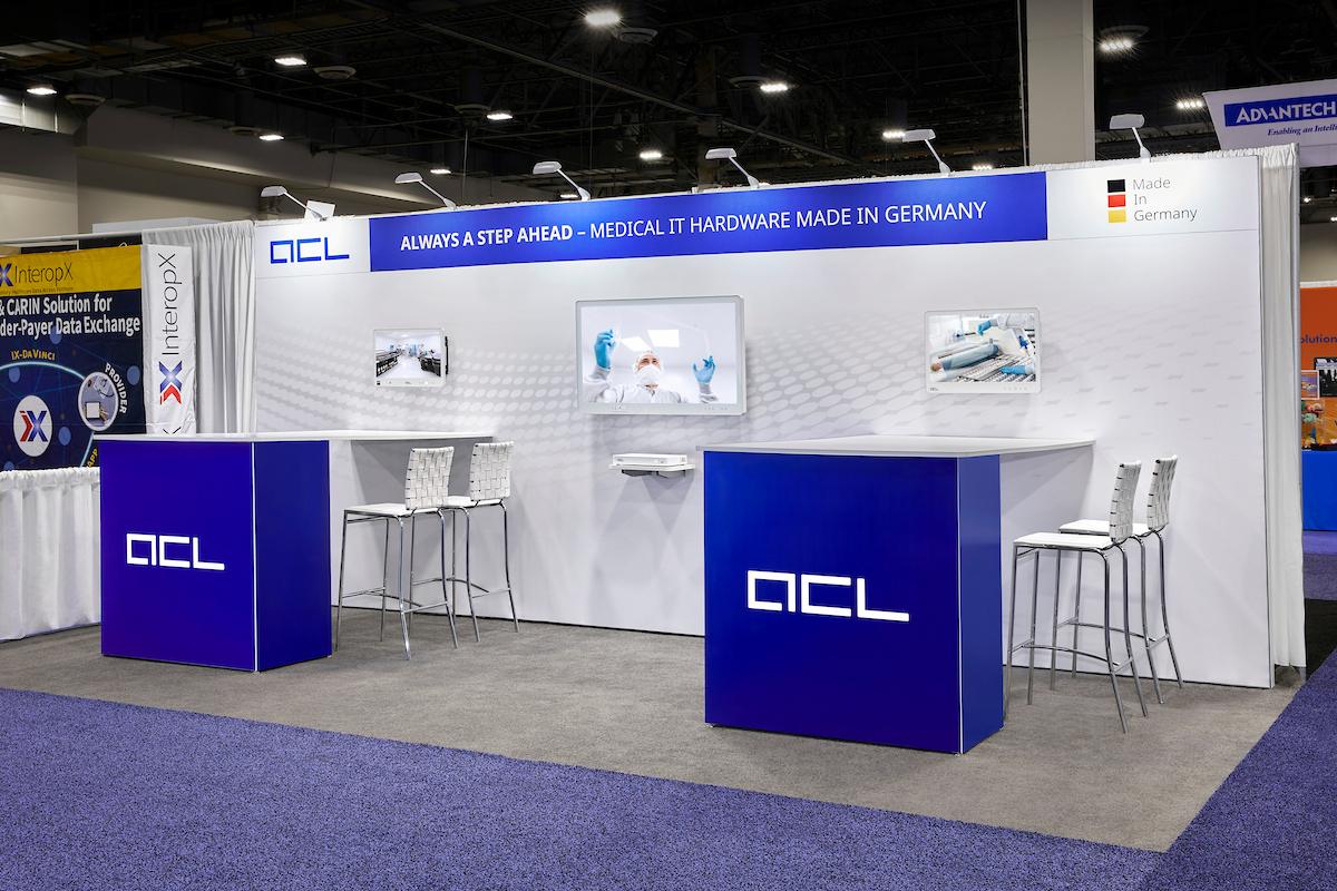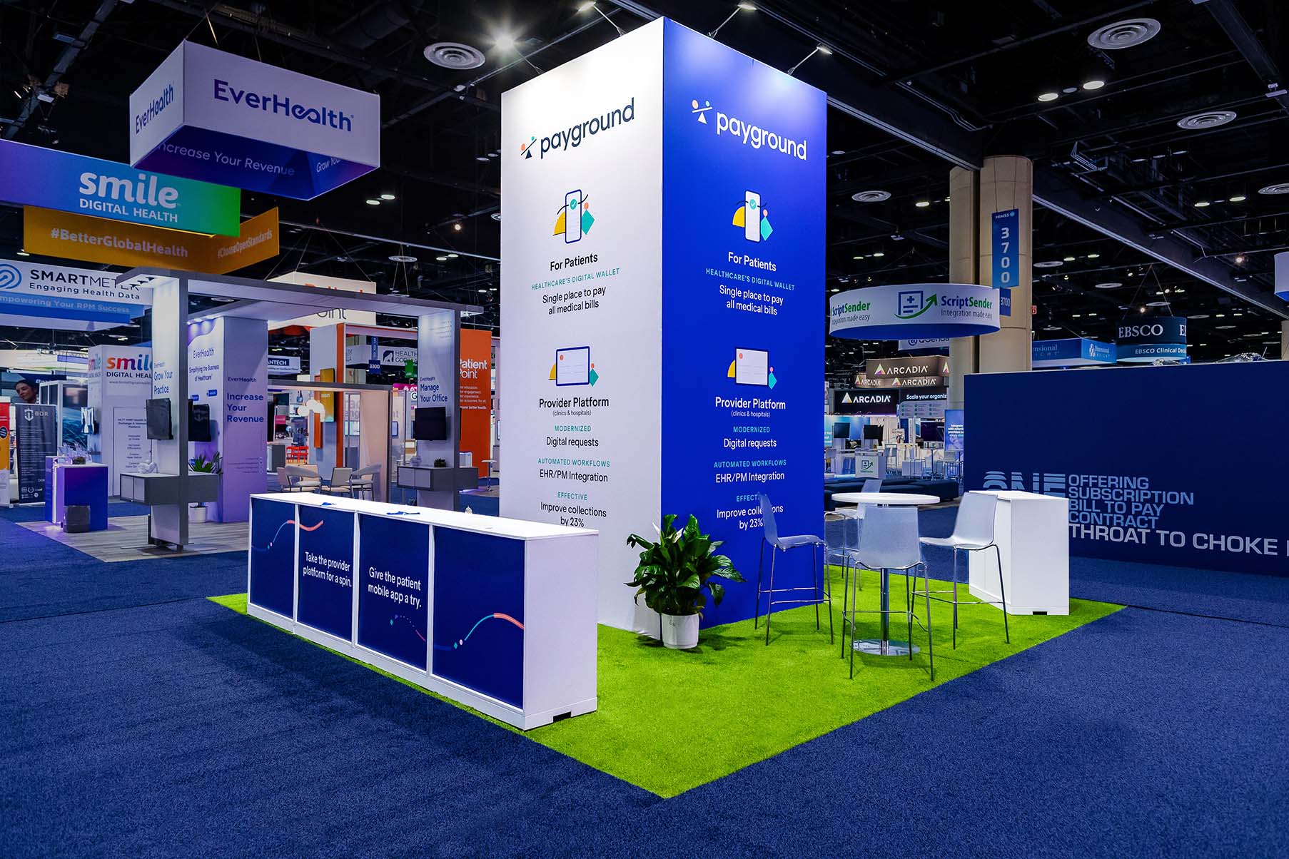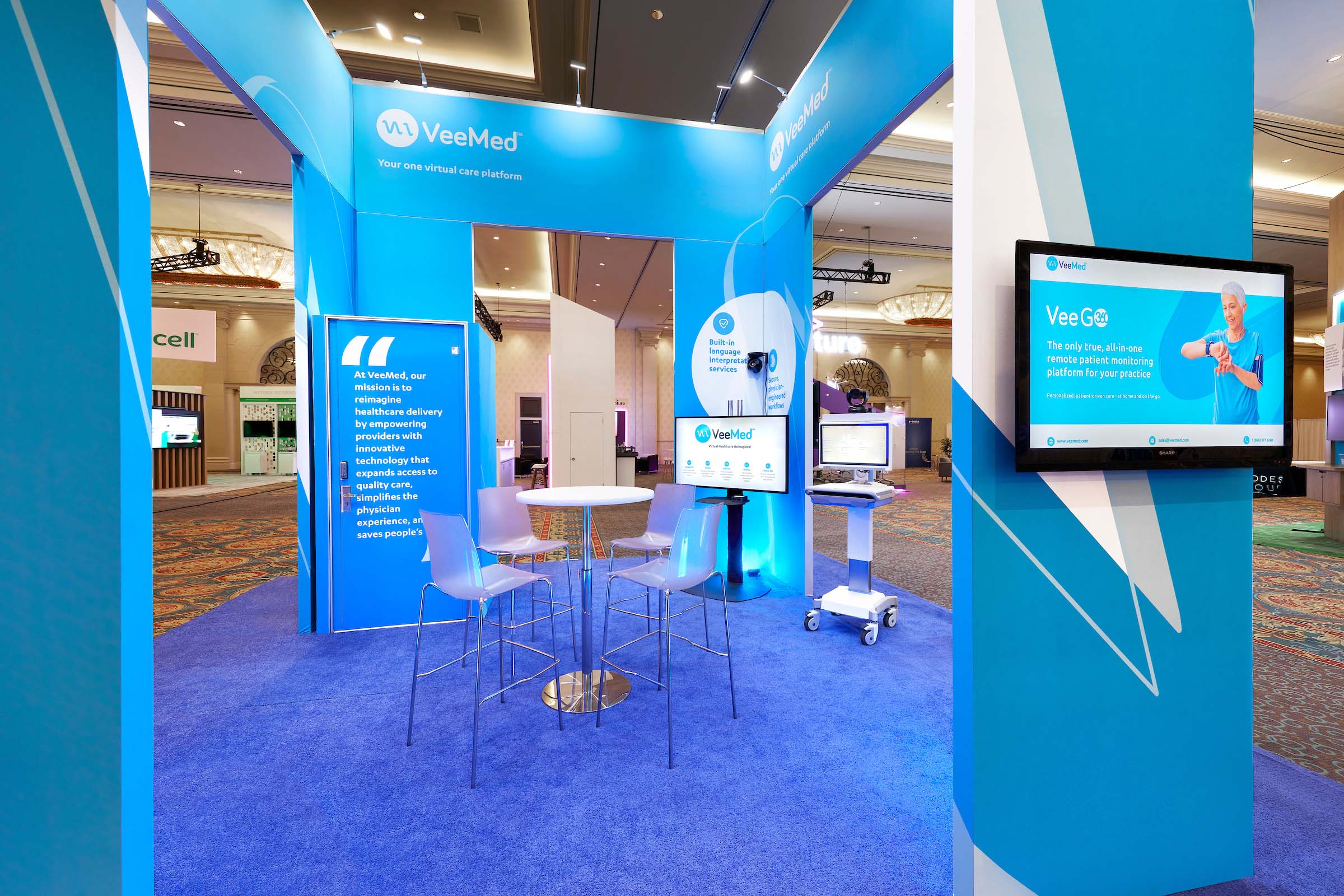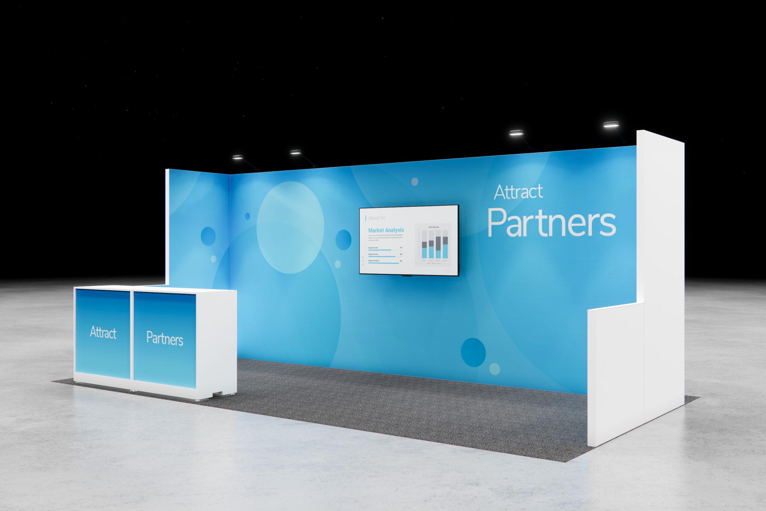 • Deliver your message with clarity and flair. This booth features a digital display and audience-focused layout to help your brand stand out.