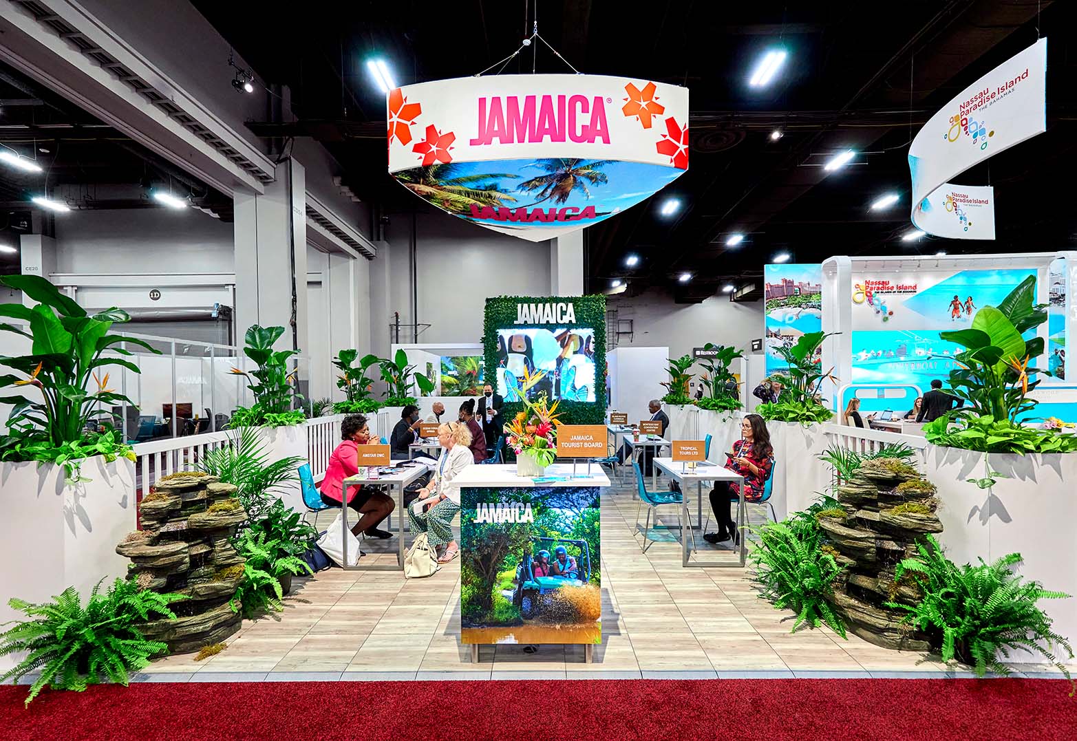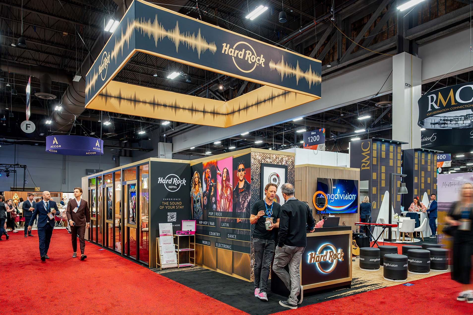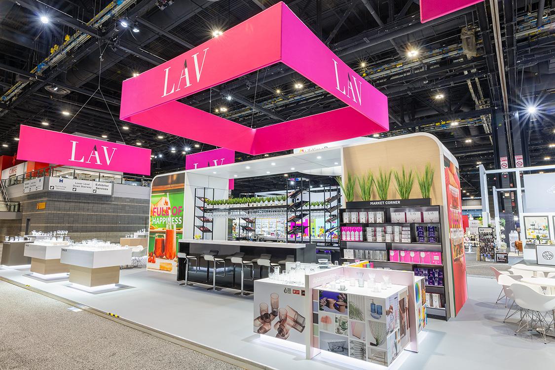 • Give attendees easy access to your products in an open, inviting space—enhanced with digital displays to help your message stand out.