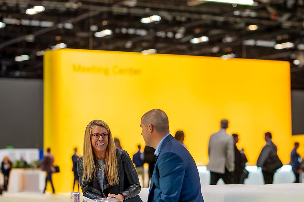 • Balances eye-catching visuals with space for focused, one-on-one meetings—ideal for making strong connections in a polished setting.