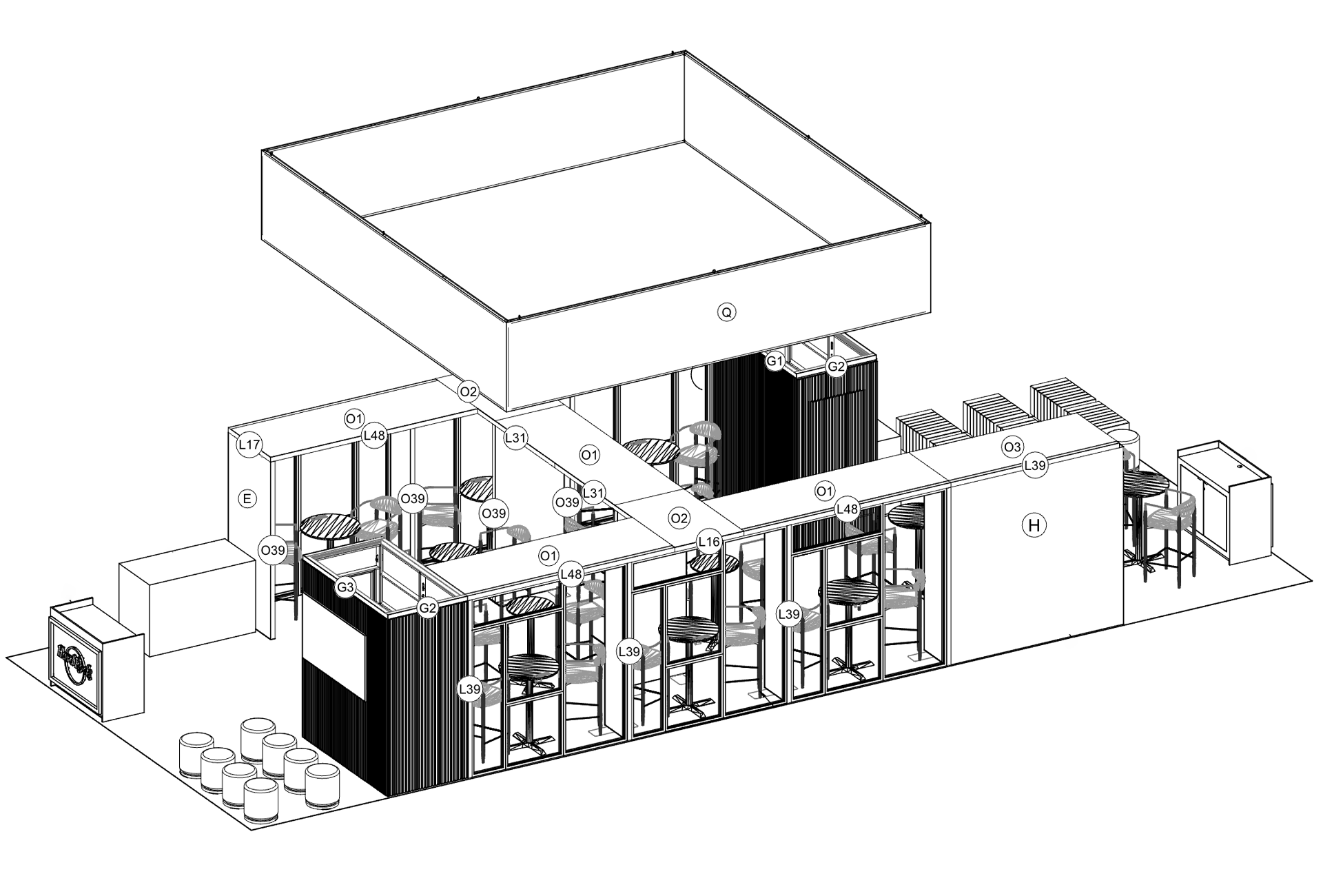 – LED and branding elements bring the design together without taking up floor space needed for making connections