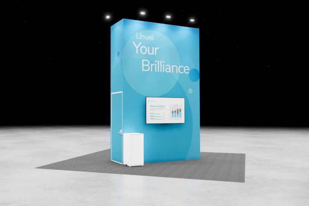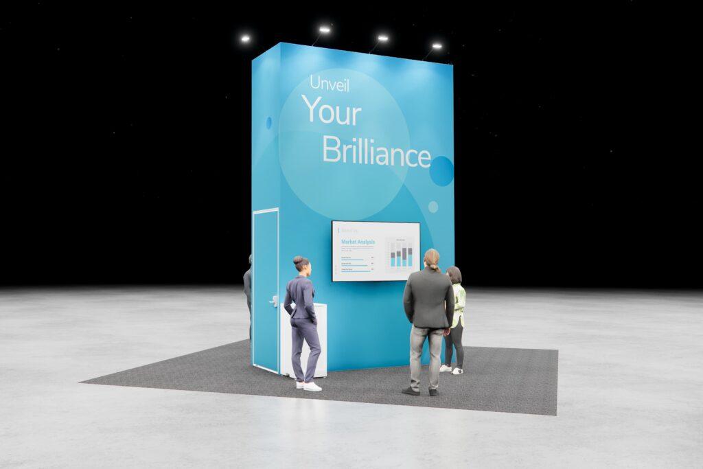 Deliver your message with clarity and flair. This booth features a digital display and audience-focused layout to help your brand stand out.