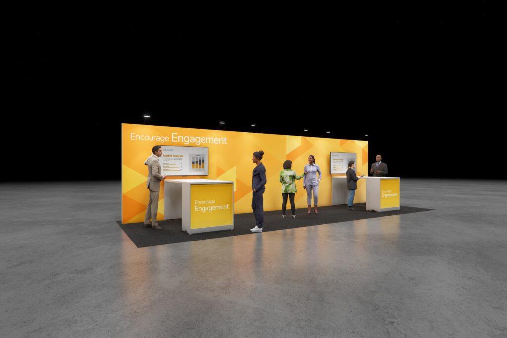Connect with attendees through live demos and conversation. With plenty of workspace and a digital screen, it’s easy to share your story—physically and virtually.