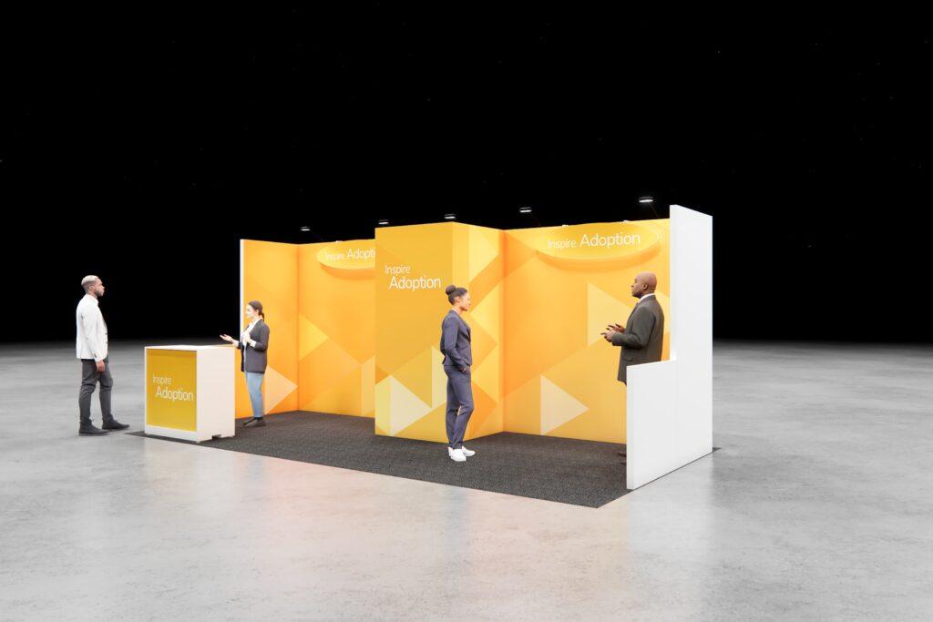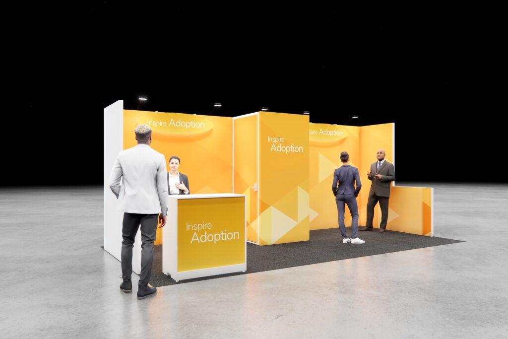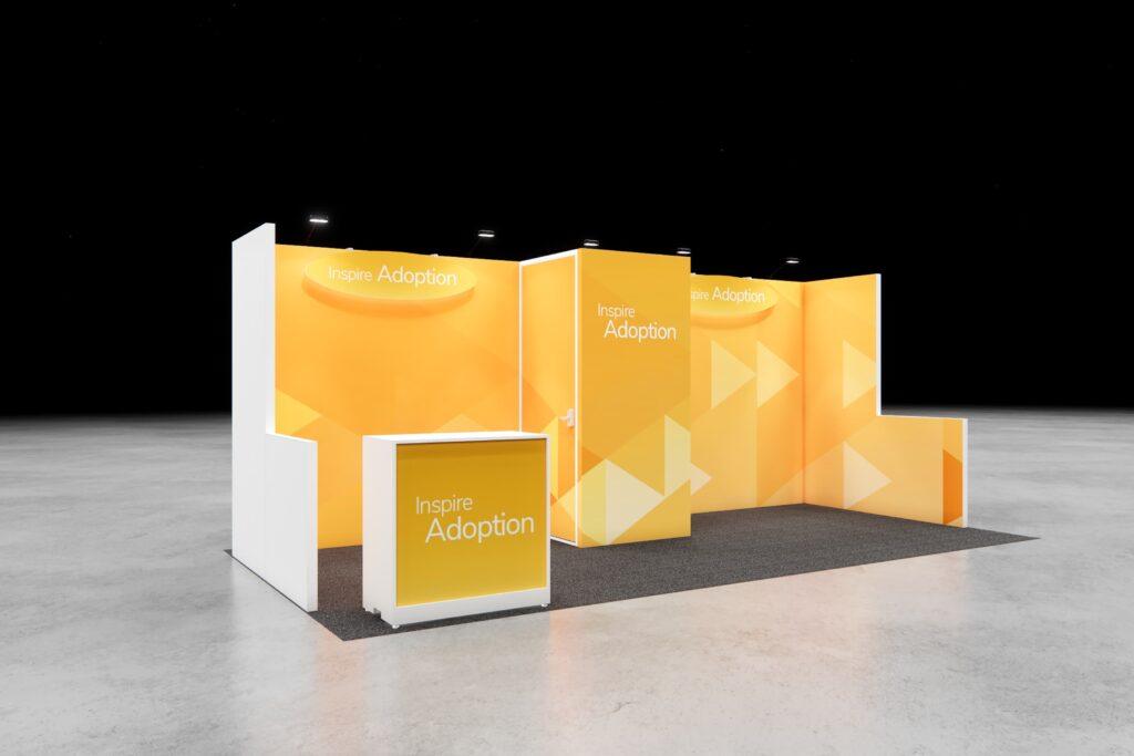 • 8’h Modular backwall structure with 3’w x 3’d storage closet with