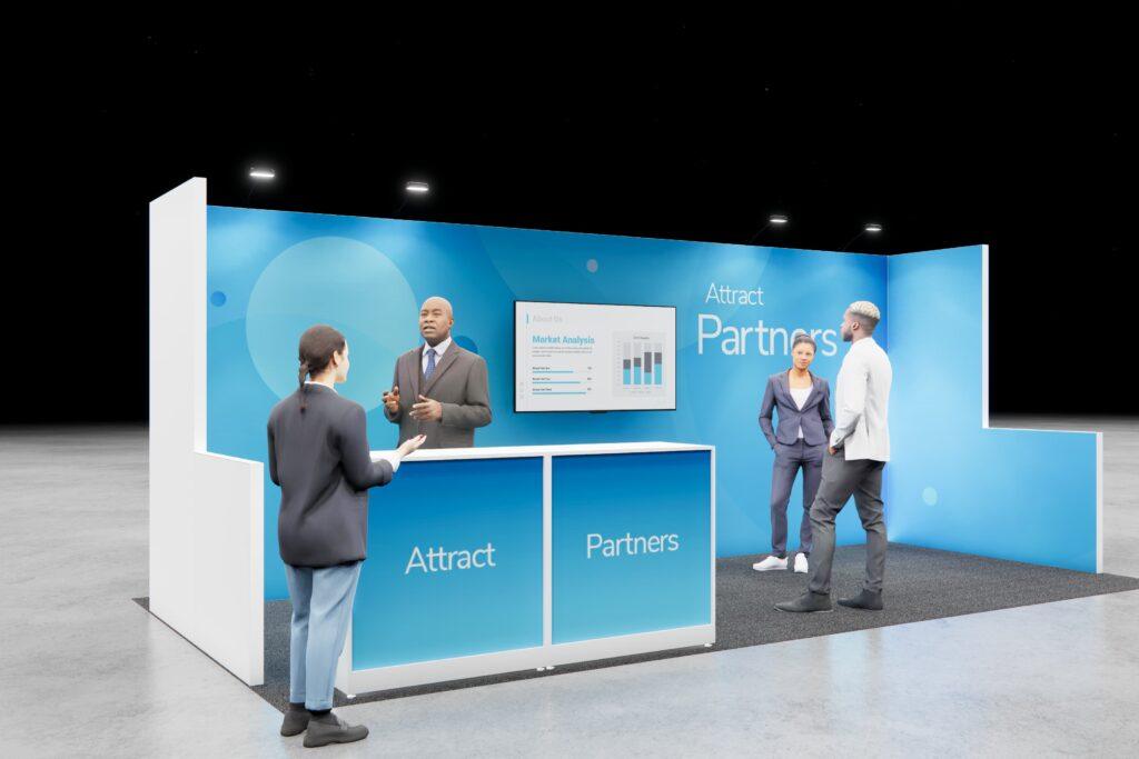 This theater-style space features a digital display to spotlight your brand and engage attendees through powerful visual storytelling.