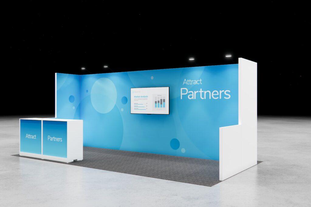 - 8’h Modular backwall structure with large mural fabric graphic.